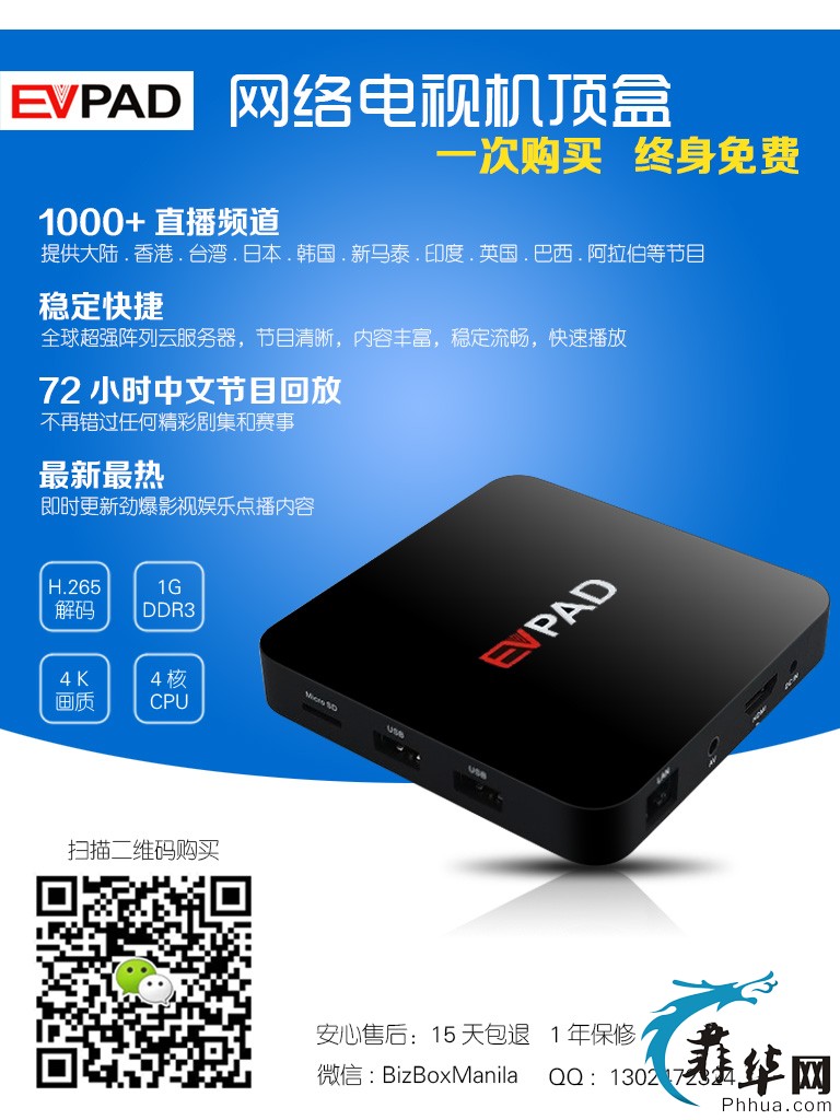 本帖最后由 bizboxmanila 于 2016-5-29 11:27 编辑 菲律宾现货发售,EVpad,专注海外华人市场,一次购买,终身免费。 1000+直播电视频道,提供大陆,港澳台,日本,韩国,新马泰等各地区电视直播,体育,影视,新 ...