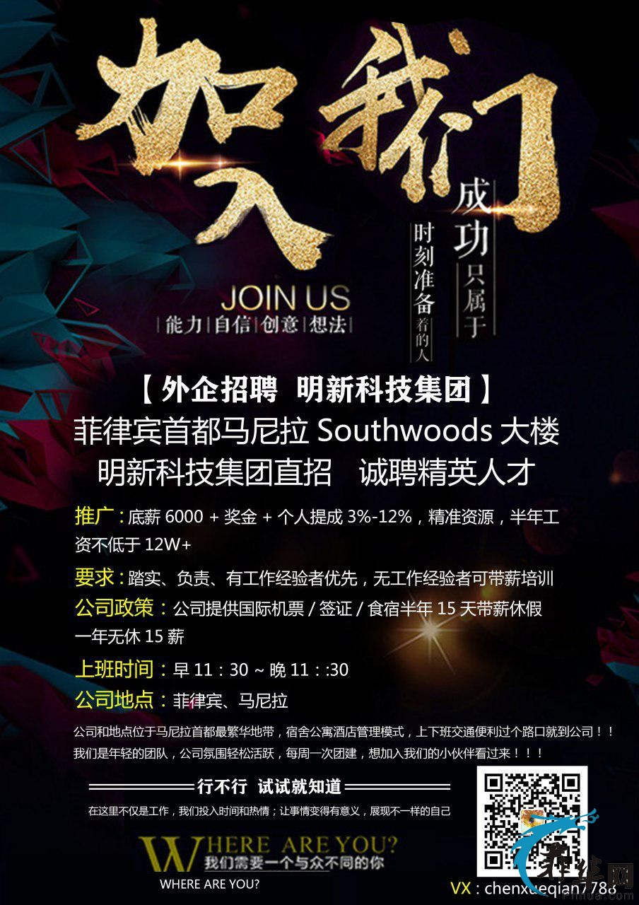 所有岗位不压工资!!接受在菲,跳槽的都可以!!!! 推广:6000+提成盈亏12% 12小时月休1 (含吃饭时间2小时)人事:试用期 8000+提成 8小时月休4 转正1W+提成(任务3个,不到任务不扣工资)行政: ...
