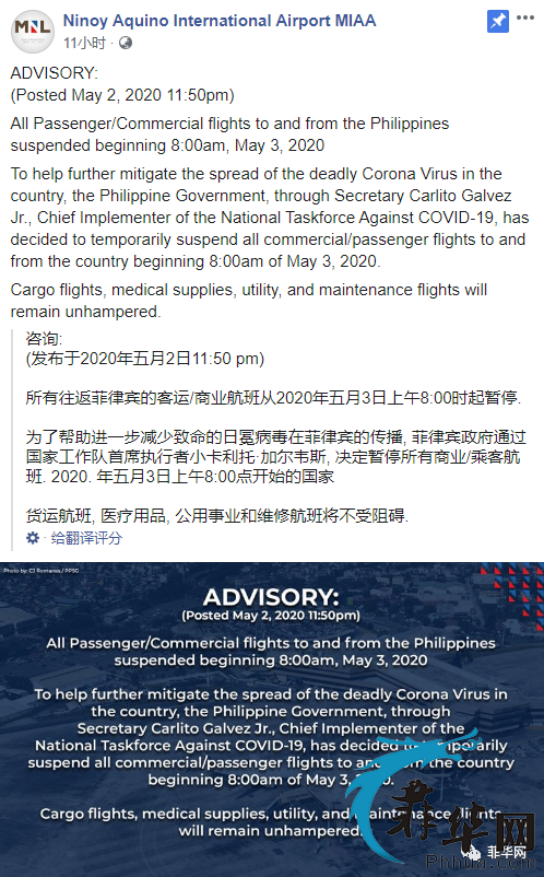 往返菲律宾的九个国际机场的航班暂停一周!中国城附近由 ...