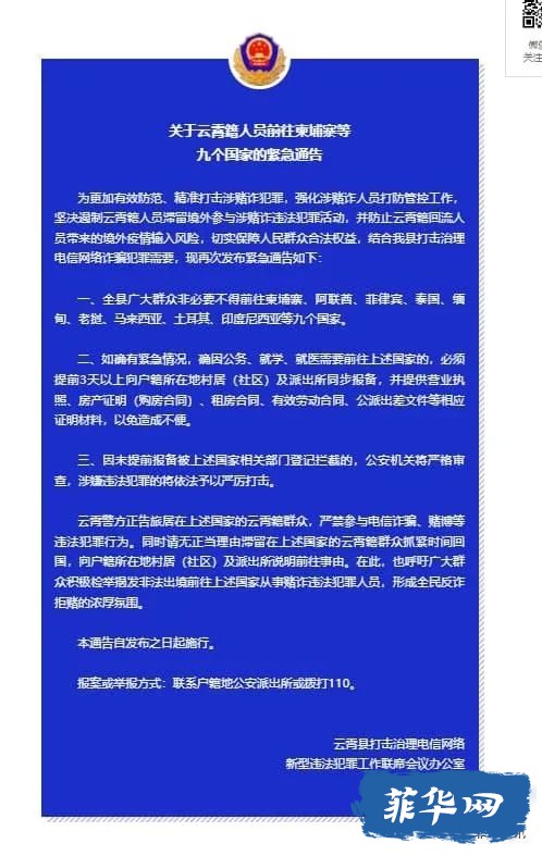 回国难,出国也将不再容易。 边境管控升级 位于福建省南部沿海的云霄县提醒广大群众非必要不得前往柬埔寨、阿联酋、菲律宾、泰国、缅甸、老挝、马来西亚、土耳其、印度。对于涉及赌博、违法滞留也增加了正常出国工 ...