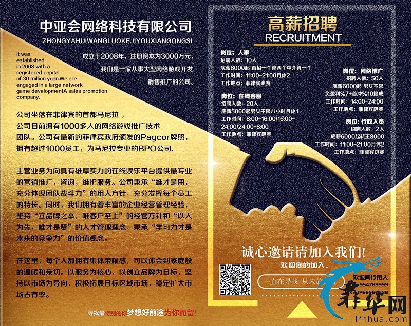 菲律宾直招,接受在菲跳槽,推广人事行政