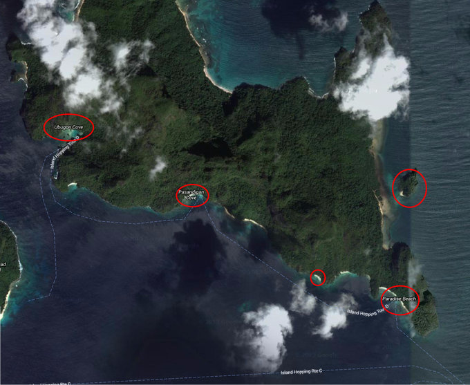 (疑似某火山) (某大岛的海岸线) (Busuanga布苏安加岛) (Coron Island 科隆岛) (不知名群岛)